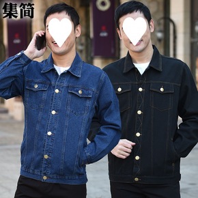 男士牛仔夹克中年爸爸外套春秋老爸秋装夹克衫工装大码...