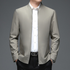 春秋新款中年男士立领薄款夹克爸爸秋装外套中老年宽松...