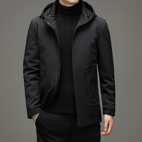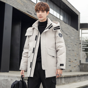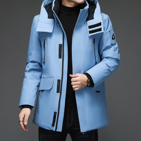 2021冬款白鸭羽绒服男中长款流行连帽可卸保暖休闲...