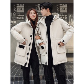 连帽羽绒服男女同款冬季潮青年学生韩版工装中长款加厚...