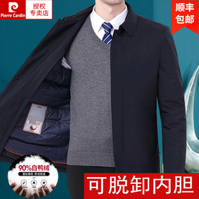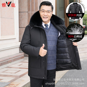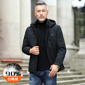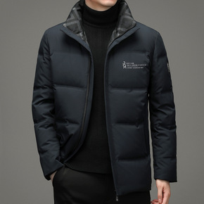 新款中长款立领中青年男士加厚保暖防寒白鸭绒羽绒服外...