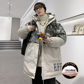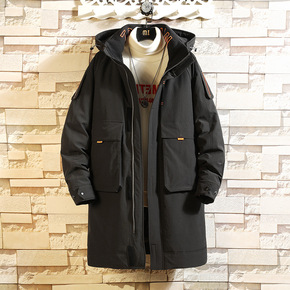 青少年潮牌工装羽绒服男中长款过膝2021年新款高品...