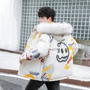 新款男生白鸭绒外套 韩版加厚连帽羽绒服韩版休闲字母...