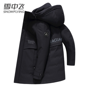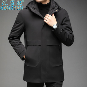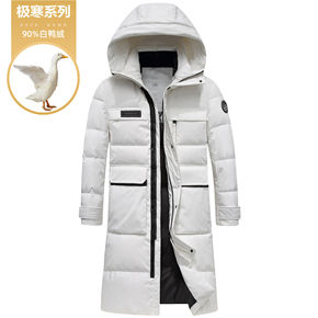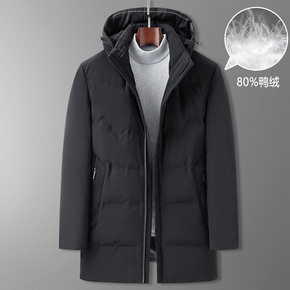 羽绒服90白鸭绒男中长款2021年冬季新款潮流简约...