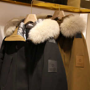 中长款情侣装工装羽绒服男女冬季新加厚休闲大毛领白鸭...