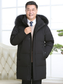 厂家直销2021新款中老年男士羽绒服大毛领中长加厚...