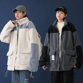 鑫臣2021冬季连帽棉衣纯色简约立体口袋复古摇粒绒...