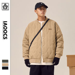 日系小贴标菱格棉衣男ins冬季加厚保暖青年棉服棉袄...