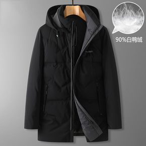 冬季新款男中长款连帽羽绒服加肥加大码羽绒风衣男宽松...