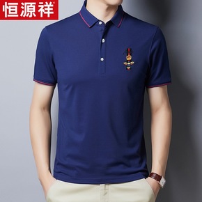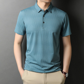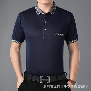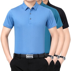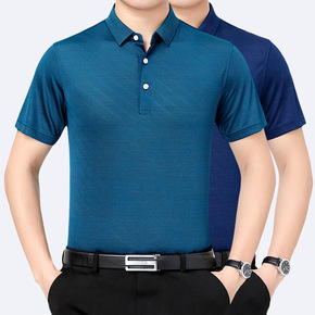 2021中年男士短袖t恤桑蚕丝polo衫男爸爸夏装...