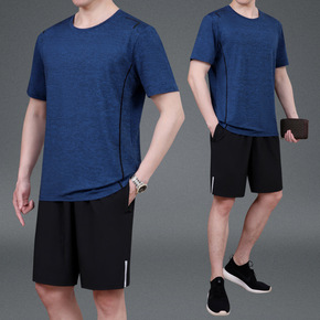 爸爸装夏装冰丝短袖T恤宽松版中年男士休闲上衣夏季中...