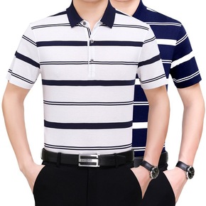 厂家直供中年男士短袖t恤夏装条纹polo衫男宽松爸...