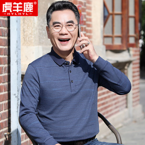 春季新款中年男士长袖t恤中老年男装爸爸丝光棉T恤休...