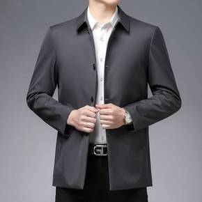 秋季新款男士加肥加大码商务休闲翻领夹克男胖子中年爸...