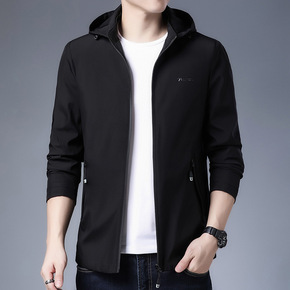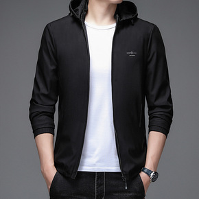 2020秋季新品中青年男士休闲抽绳连帽夹克精致印花...
