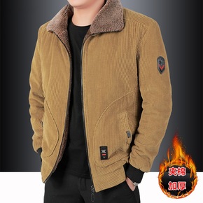 9919灯芯绒男外套秋冬新款休闲加厚中年男士夹克衫...