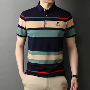2021夏季新款男士短袖T恤 桑蚕丝翻领休闲男短袖...