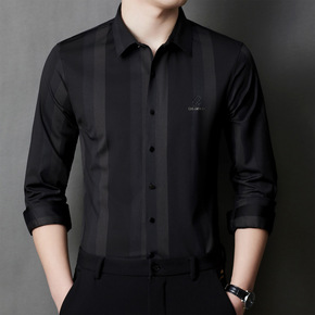 普雷维尔 春季新品男装无痕长袖衬衫 商务男士速干格...
