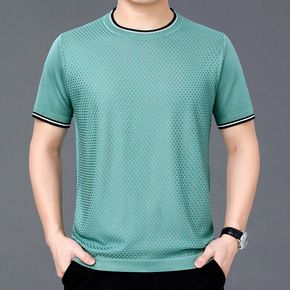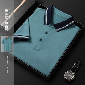 2022新款桑蚕丝短袖t恤男翻领中老年商务休闲爸爸...