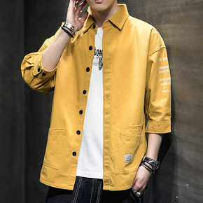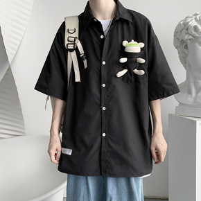 短袖衬衫男士2021新款韩版潮流休闲宽松衬衣夏季七...