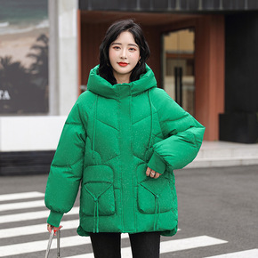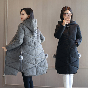 2022秋冬季新款保暖棉衣女中长款修身连帽毛球棉服...