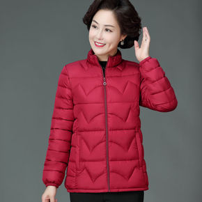 妈妈冬装羽绒棉服短款立领小棉衣大码中老年女装洋气薄...