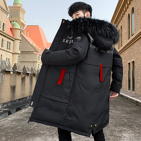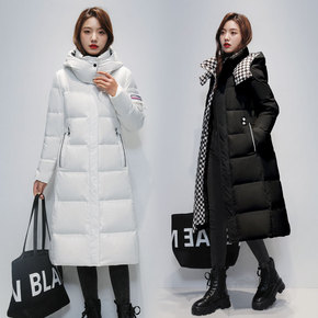 真狐狸毛领羽绒服女2021冬新款连帽修身中长款收腰...