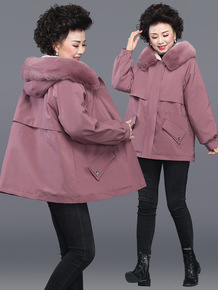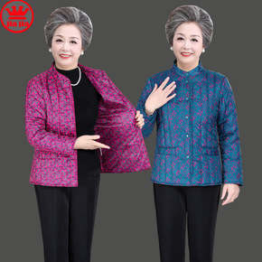 妈妈秋冬加绒加厚外套2021新款中老年女冬装棉衣短...