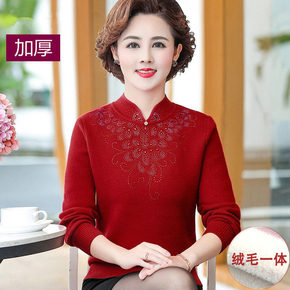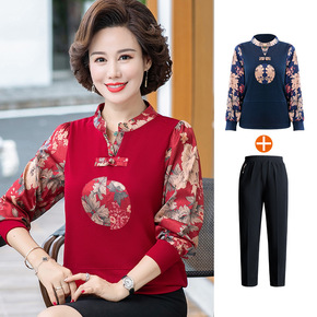 中年妈妈秋装洋气上衣2021新款中老年人运动套装女...