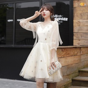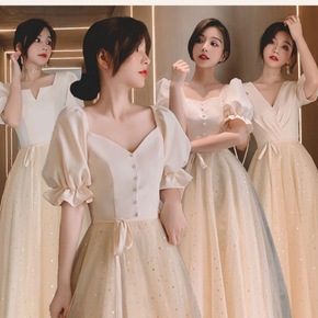 香槟色晚礼服裙2022新款宴会伴娘学生毕业名媛派对...