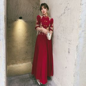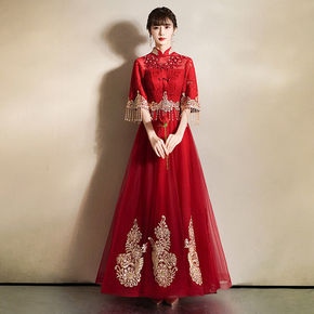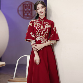 2022旗袍敬酒服新娘新款秋季结婚订婚礼服回女中式...