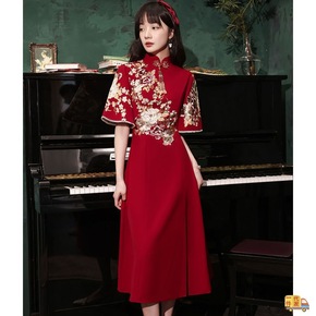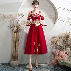旗袍敬酒服新娘2022新款夏季结婚酒红色小个子订婚...
