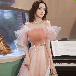 晚礼服女2022新款名媛宴会气质仙气学生一字肩主持...