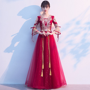 敬酒服新娘2020秋款中式红色结婚长款长袖修身显瘦...