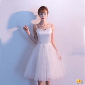 2022新款短婚纱伴娘服秋季吊带短款森系旅拍清新情...