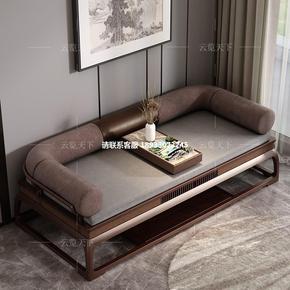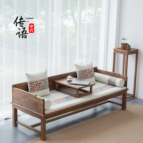 新中式实木罗汉床小户型客厅简约老榆木黑胡桃贵妃沙发...