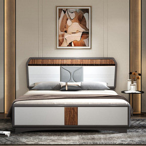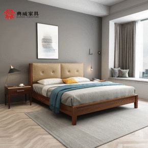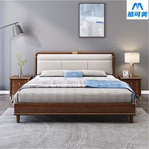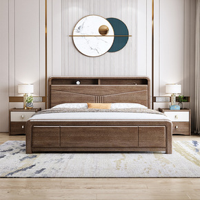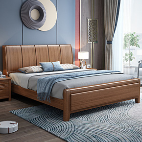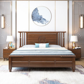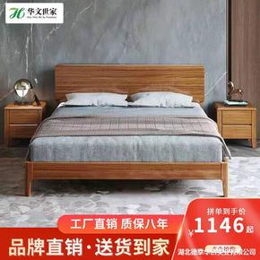 金丝胡桃木实木床双人1.8米1.5简约现代新中式主...