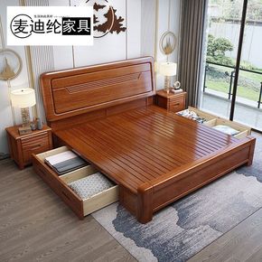 橡木床实木床1.5新中式双人床高箱储物1.8米简约...