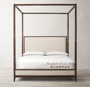 新中式民宿纯实木架子床北欧轻奢四柱双人床黑色1.5...