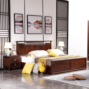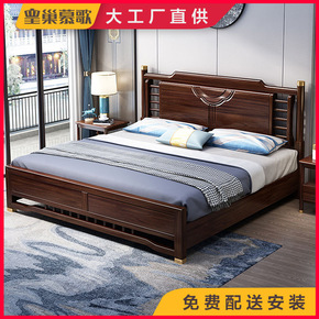 新中式乌金全实木大床简约现代1.8米双人婚床小户型...
