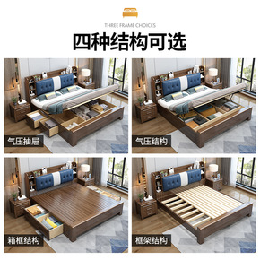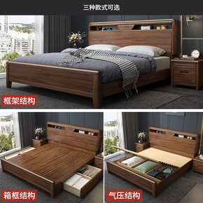 新中式实木床金丝胡桃木床1.8米双人床1.5m气压...