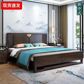 实木床胡桃木全新中式双人床1.8米现代简约主卧1....