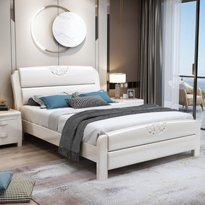 实木床双人床原木床加厚真皮床双人床阳台储物床双人床...