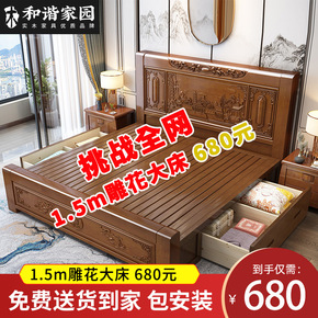 中式实木床1.8米双人床红木床花梨木仿古雕花床主卧...
