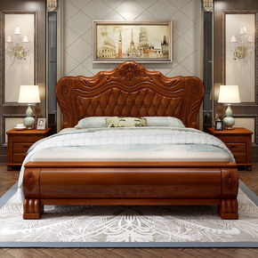 轻奢美式全实木大床1.8米主卧室双人储物床1.5米...