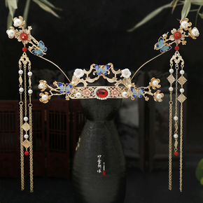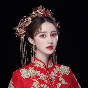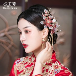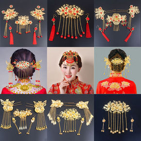 新娘古装头饰中式嫁衣发饰凤冠耳环套装秀禾服装龙凤褂...