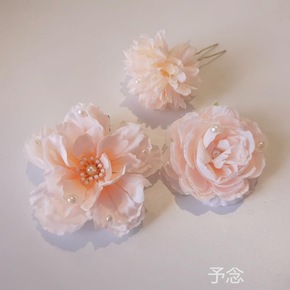 金属网纱六瓣花发叉 镶钻网片花簪子中国风新娘u型盘...