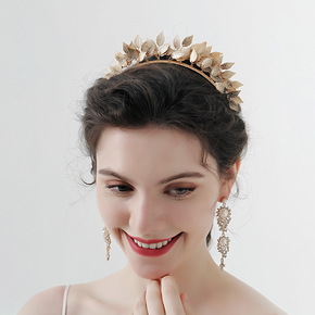 映山红外贸欧美手工镂空叶子合金发梳婚纱礼服配饰新娘...