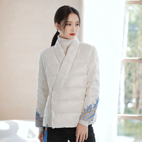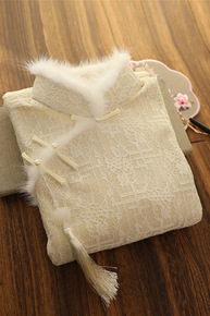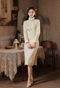 冬季改良新款水貂毛领保暖毛呢绣花旗袍 日常时尚休闲...