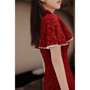 秋冬季中长款斗篷旗袍 雪尼尔蕾丝旗袍改良直襟日常宴...